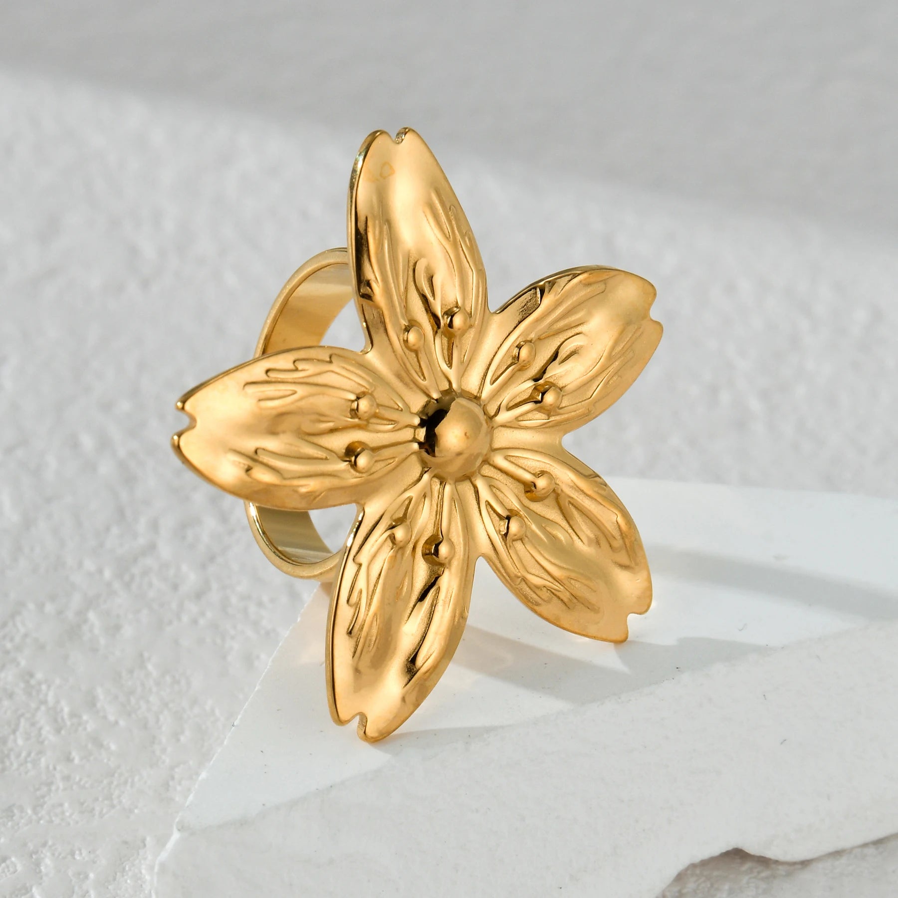 New Trendy 18K Gold-plated Flowers Ring For Women Stylish Vintage